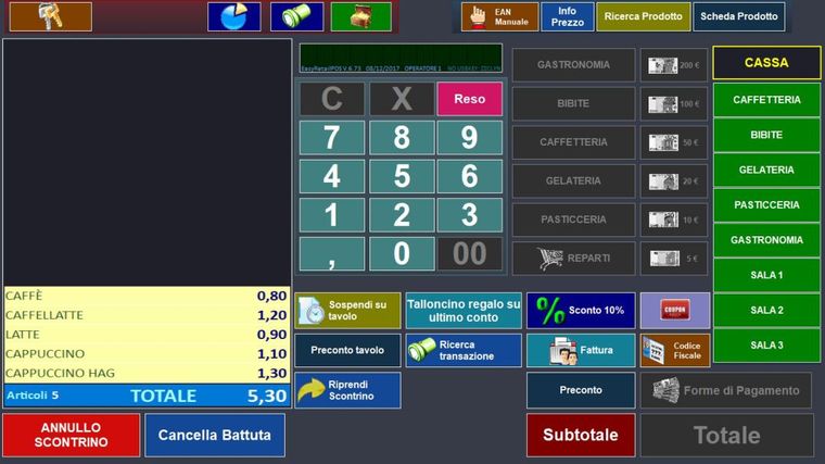 Il gestionale per bar è il software di vendita, totalmente personalizzabile, collegabile a diversi registratori e stampanti fiscali per l’emissione di scontrini.