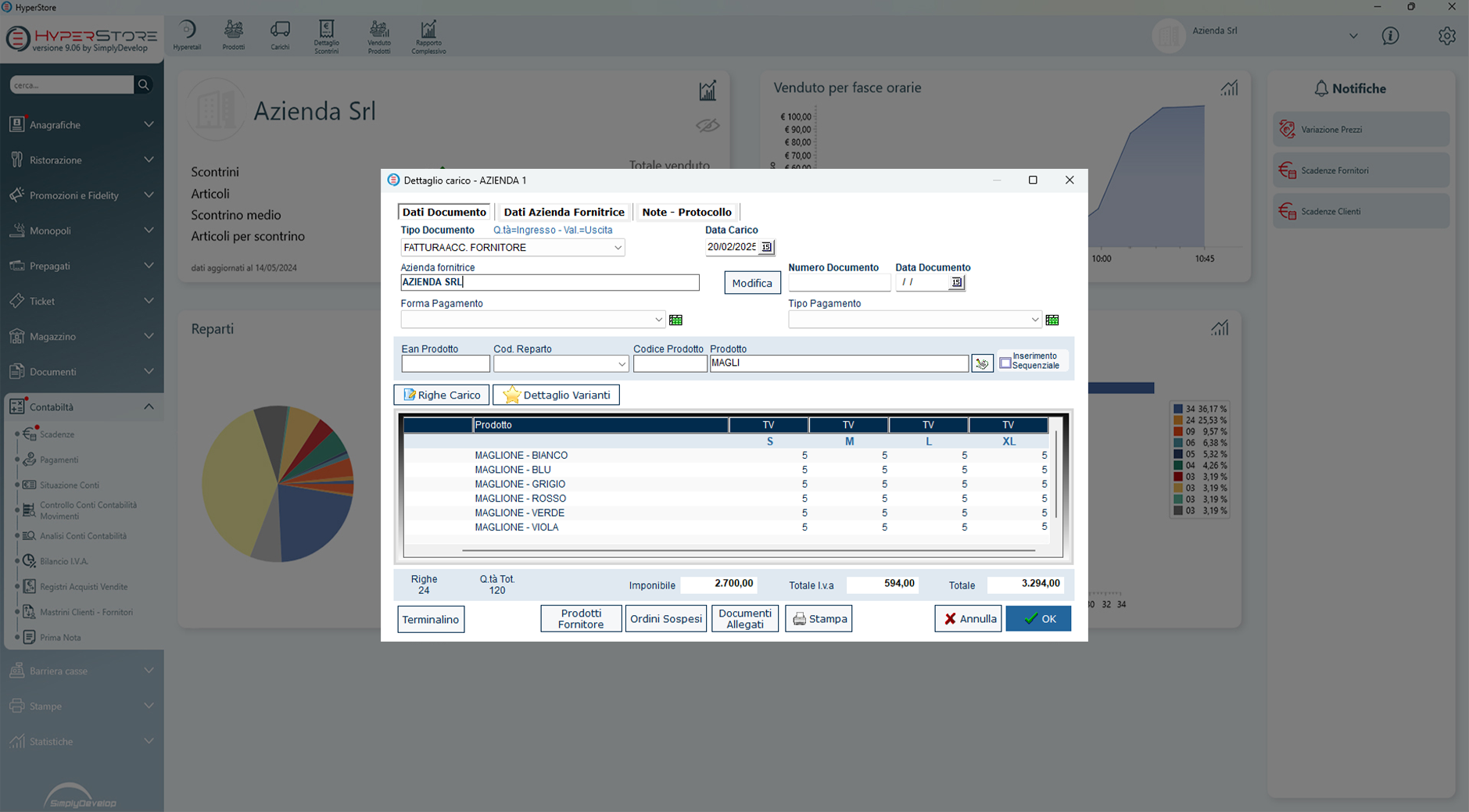 Con la gestione delle varianti, sarà possibile visualizzare in real time, prezzo e giacenza della singola variante prodotto che permette all’operatore di avere una situazione completa ed immediata del magazzino.