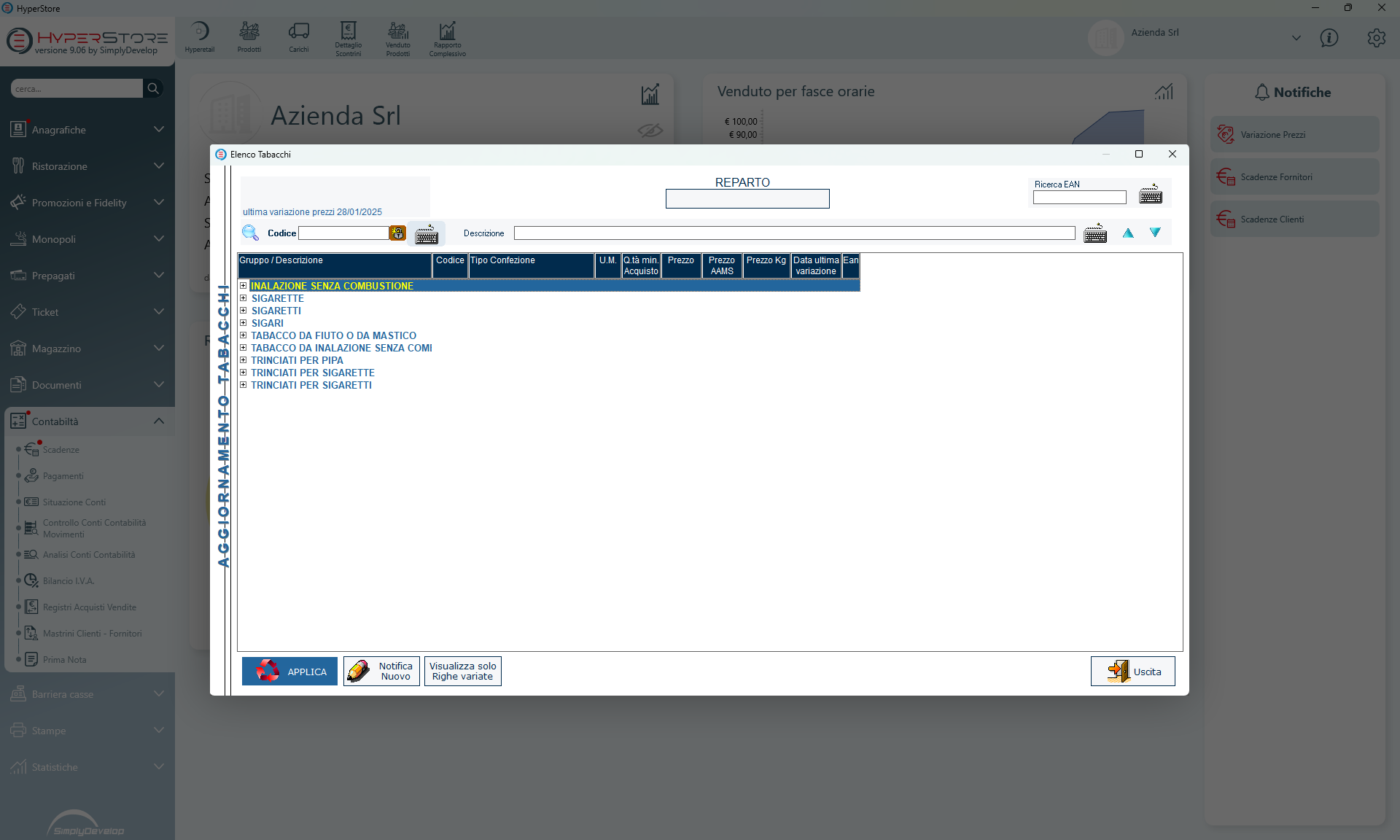 I Tabacchi vengono gestiti come normali prodotti da banco sui quali viene attivato un sincronismo automatico prezzi con l’AAMS.